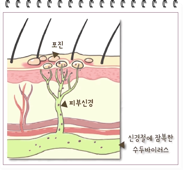 대상포진이란 무엇이고 대상포진에 좋은 음식에 대해서 알아보도록 하겠습니다. 대상포진에 걸리면 피부가 아프기 때문에 단순히 피부병이라고 생각하기 쉽지만 사실 신경 치료가 필요한 신경계 질환입니다. 어릴 적 앓았던 수두 바이러스가 몸 속에 잠재되어 조용히 숨죽이고 있다가 성인이 된 후에 발현면서 생깁니다.